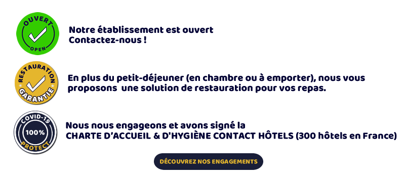 Un petit hôtel = moins de monde donc moins de risques et toujours plus d'hygiène pour votre sécurité!! Retrouvez nos engagements pour que vous puissiez séjourner en toute sérénité!